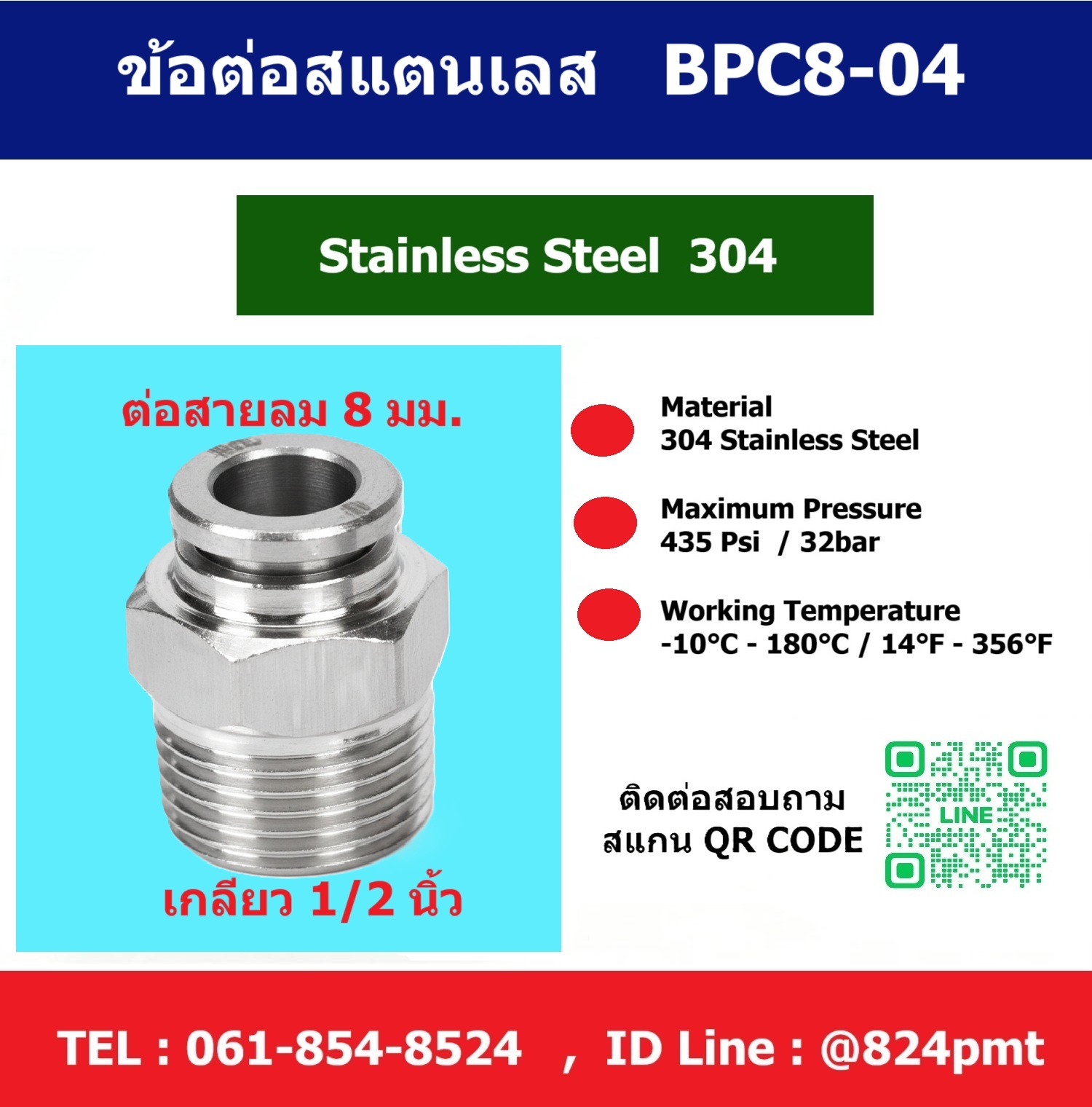 BPC 8-04 ข้อต่อลมสแตนเลส304