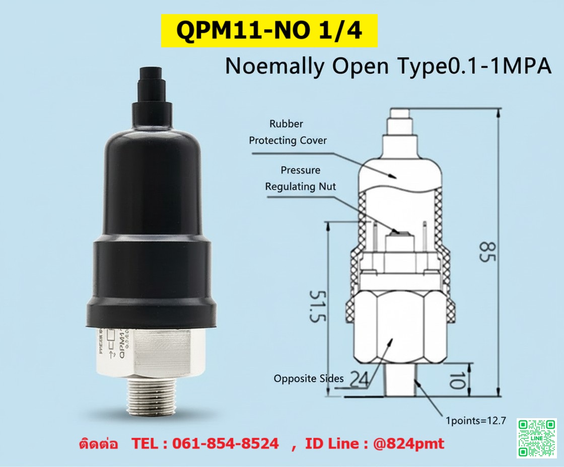 Pressure Switch QPM11 เป็นอุปกรณ์ที่ใช้ในการ ตรวจจับและควบคุมแรงดันลม ในระบบนิวเมติกส์ หน้าที่หลักของมันคือการ เปิดหรือปิดวงจรไฟฟ้า โดยอิงตามระดับแรงดันลมที่ตั้งไว้