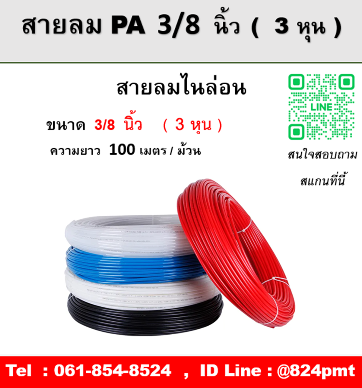 สายลมไนล่อน หรือที่เรียกกันว่า สายลม PA (Polyamide Tube) เป็นอุปกรณ์สำคัญในระบบนิวเมติกส์ (ระบบลม) ที่โดดเด่นในด้านความทนทานและประสิทธิภาพสูง โดยเฉพาะในขนาดเล็กอย่าง 3/8 นิ้ว หรือที่ช่างเรียกว่า 3 หุน (OD: โตนอก 3/8 นิ้ว) ซึ่งเหมาะสำหรับการเดินท่อในพื้นที่จำกัด